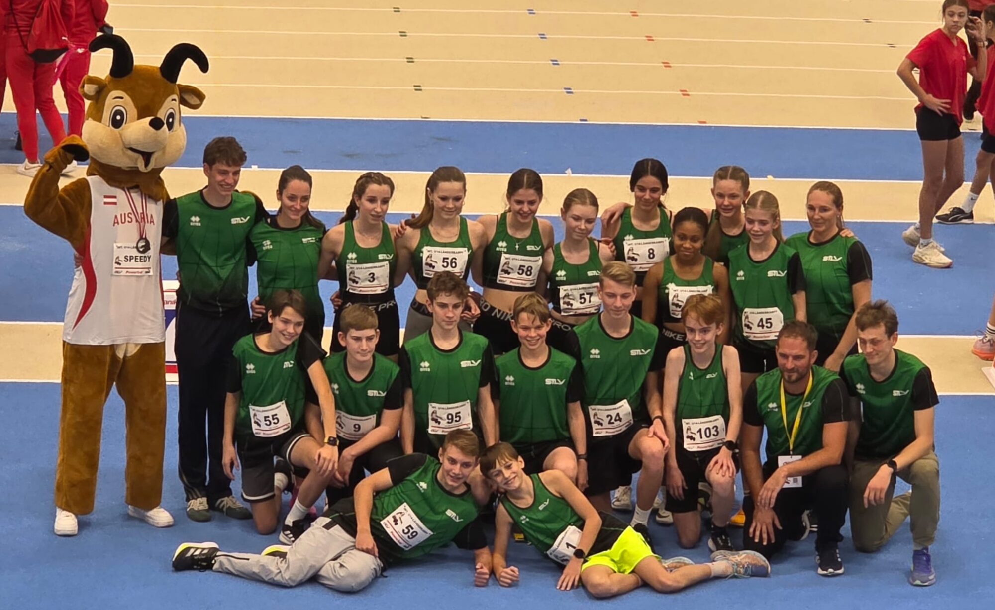 Anna Hofbauer, als U14 Athletin und Sandra Hofbauer, als Trainerin und Betreuerin wurden vom STLV in das steirische Team für den U14-Länderkampf am 29.November in der neuen Sport Arena Wien berufen. Bei diesem Wettkampf traten U14-Teams aller Bundesländer, sowie Teams aus Polen und der Slowakei an. Die ausländischen Teams waren den Österreichern Großteils überlegen. Aber am Ende erreichten Anna und Sandra mit ihrem weiblichen Team aus der Steiermark den tollen 4. Gesamtrang, hinter Polen 1 und 2 und den Mädls aus Niederösterreich. Anna trat in den Disziplinen Kugelstoß und Weitsprung an, wobei sie in Kugelstoß mit 10,16m einen neuen steirischen Hallenrekord in der weiblichen U14 aufstellt. Es war für die beiden ein tolles, internationales Erlebnis und ein weiteres sichtbares Zeichen der MLG Sparkasse, die Steiermark vertreten zu dürfen.