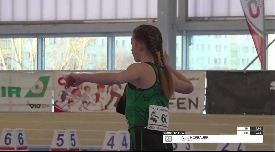 Anna Hofbauer, als U14 Athletin und Sandra Hofbauer, als Trainerin und Betreuerin wurden vom STLV in das steirische Team für den U14-Länderkampf am 29.November in der neuen Sport Arena Wien berufen. Bei diesem Wettkampf traten U14-Teams aller Bundesländer, sowie Teams aus Polen und der Slowakei an. Die ausländischen Teams waren den Österreichern Großteils überlegen. Aber am Ende erreichten Anna und Sandra mit ihrem weiblichen Team aus der Steiermark den tollen 4. Gesamtrang, hinter Polen 1 und 2 und den Mädls aus Niederösterreich. Anna trat in den Disziplinen Kugelstoß und Weitsprung an, wobei sie in Kugelstoß mit 10,16m einen neuen steirischen Hallenrekord in der weiblichen U14 aufstellt. Es war für die beiden ein tolles, internationales Erlebnis und ein weiteres sichtbares Zeichen der MLG Sparkasse, die Steiermark vertreten zu dürfen.
