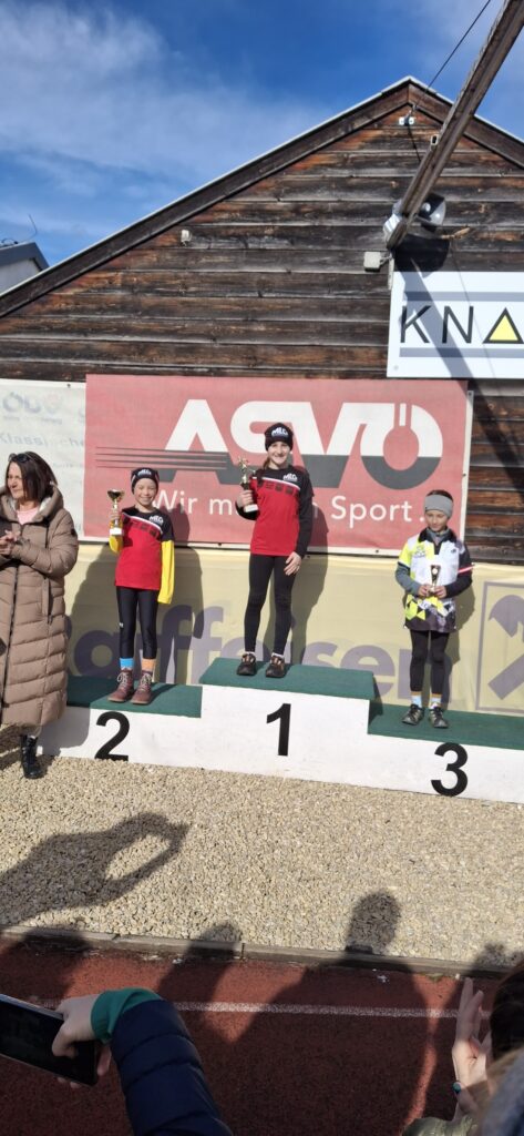 Und am 7.2.2026 nahmen Josefina, Chiara und Liam beim Crosslauf Leoben teil. Josefina belegte in ihrer Klasse Platz1, Chiara Platz 2.